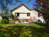 Agréable maison située dans la verdure comprenant : une cuisine équipée avec un ilot central ouverte sur un agréable séjour avec poêle à bois, trois chambres, une salle d'eau/wc. Au sous sol : deux pièces, une cave et un garage. Joli terrain clos et arboré.
