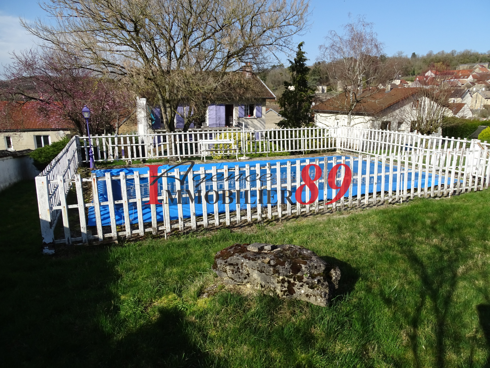 Sur environ 1500m² de terrain clos, lumineuse maison de village à rafraichir comprenant, pour une surface habitable d'environ 175m², entrée, séjour ouvrant sur terrasse, salon ouvrant sur balcon , deux cuisines, 4 chambres, 2 salles de bains et 2 wcs. Au rez de jardin : cellier, chaufferie, cave, atelier et 2 garages. Jardin clos et arboré. Piscine (8x4). A découvrir.